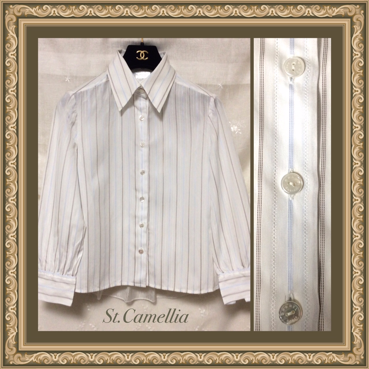 - CHANEL シャネル 美品 03P ストライプ コットン ブラウス 38 トップス
