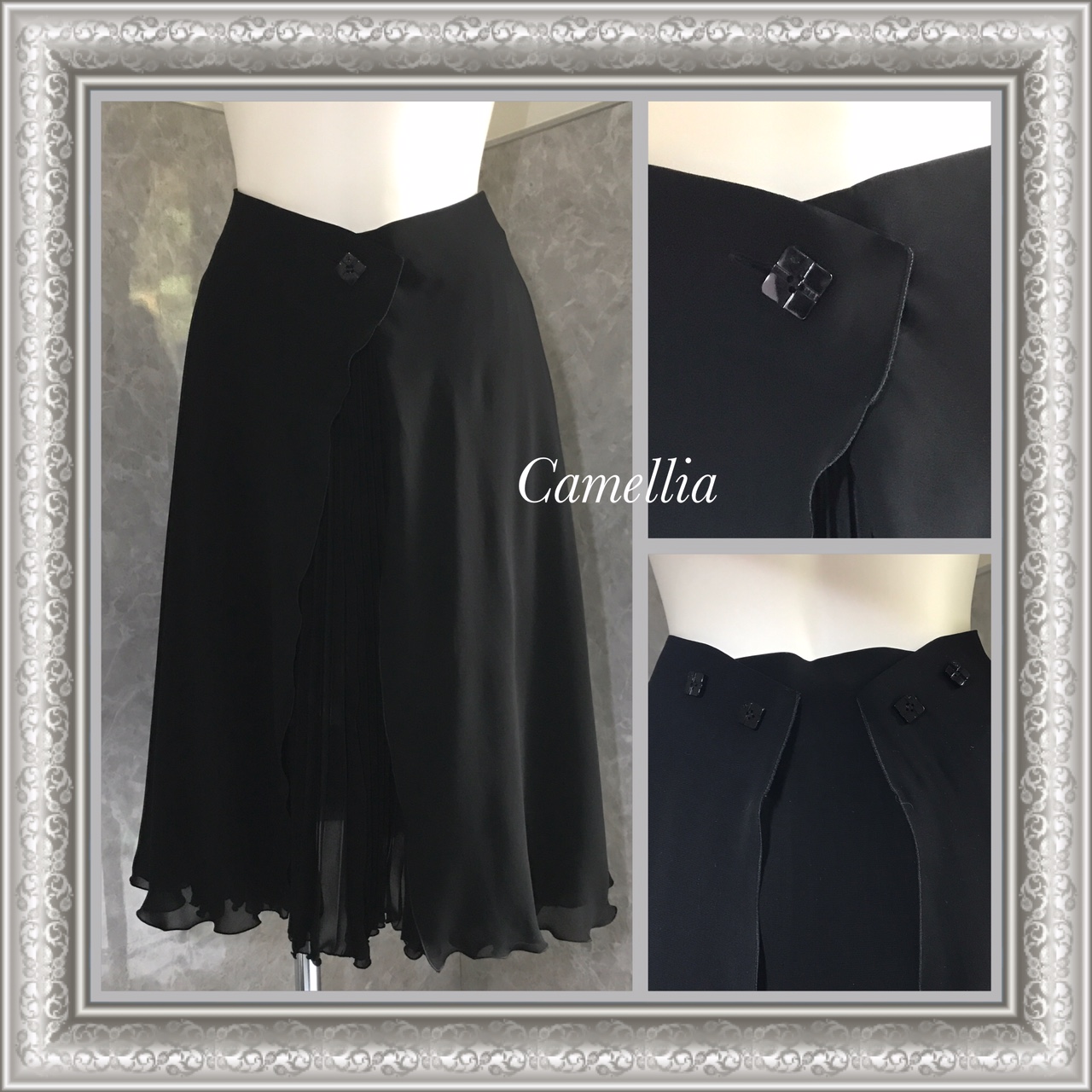 - CHANEL シャネル 02P ブラック シルク ロング スカート CC プレート 38