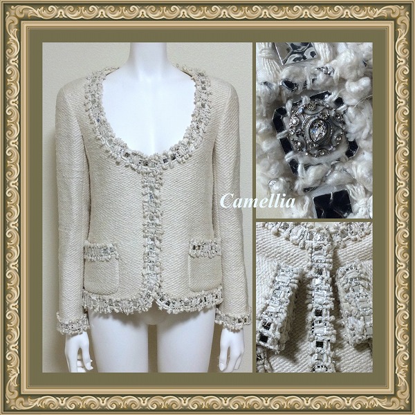 - CHANEL シャネル 2012 パリボンベイ Runway ジュエル トリム ジャケット 36 銀 白 シルバー ホワイト
