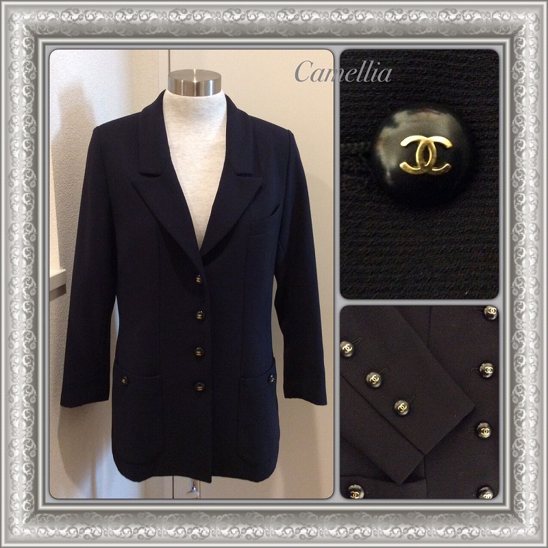 - CHANEL 美品 シャネル ウール ココ釦 ジャケット 墨紺