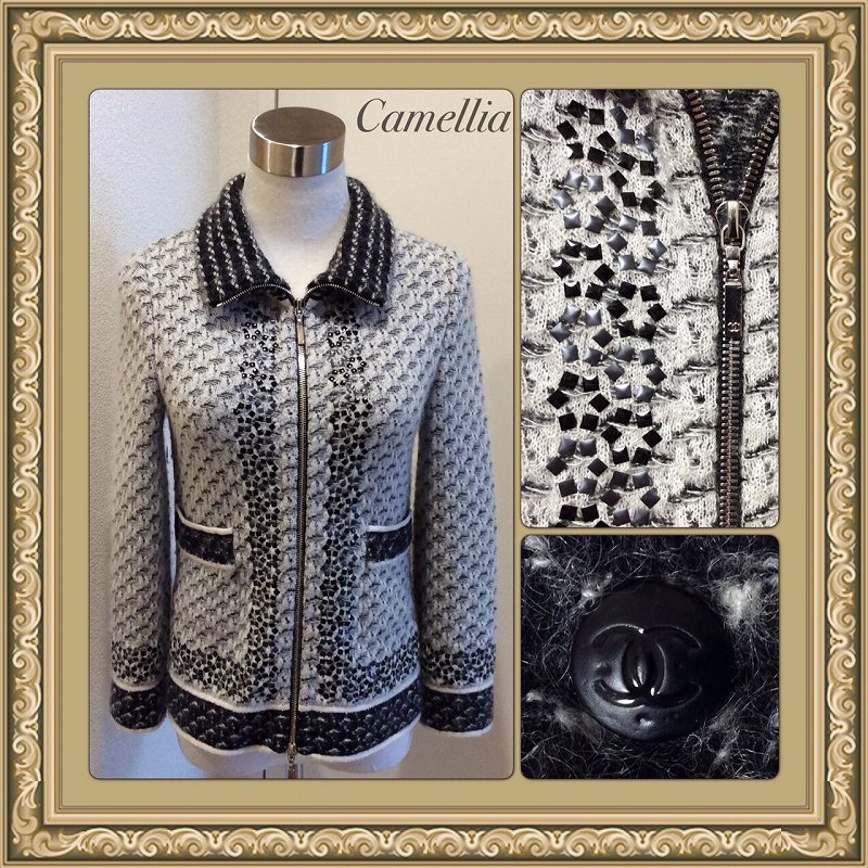 - CHANEL シャネル 2010 カシミア混 宝飾 ニット ジャケット カーディガン 34