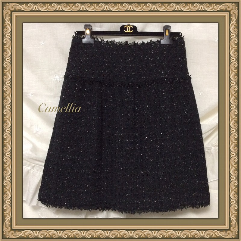 - CHANEL シャネル 05A 高級 ラメ CC ツイード スカート 黒 フリンジ 40