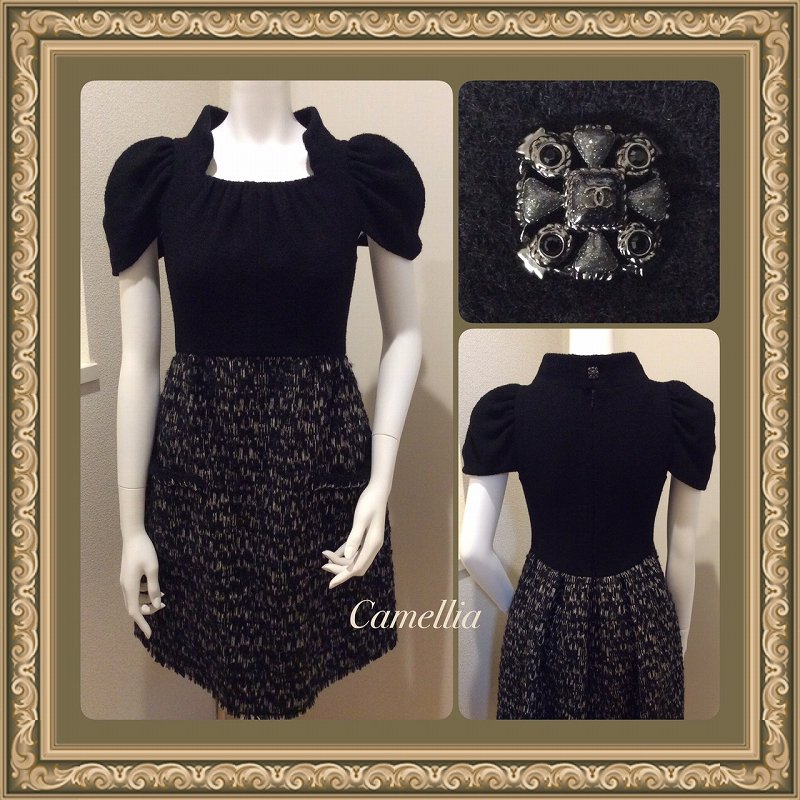 - CHANEL 美品 シャネル 2011 ブラック 切替 ツイード ワンピース 34 ドレス ジュエル